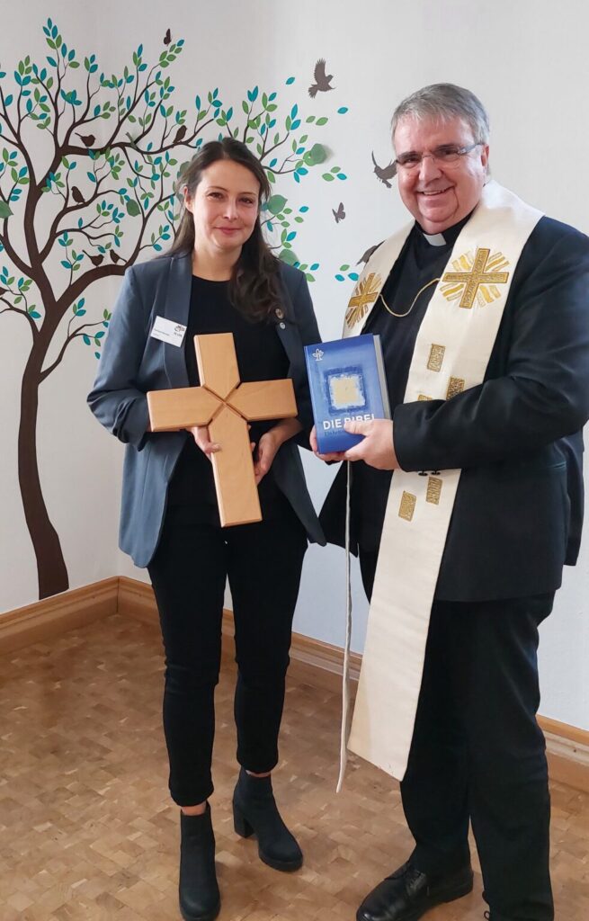 Bei der Jubiläumsfeier überreichte er zwei Zeichen zur Orientierung: eine Bibel und ein Kreuz.