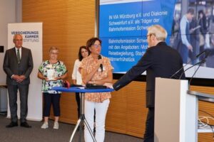 Schweinfurt. „Es macht uns sehr stolz, dass wir bei der Abstimmung so viele Menschen für unser Angebot begeistern konnten“, betont Martina Fallmann vom katholischen Trägerverband IN VIA Würzburg, „ein solcher Preis ist natürlich eine besondere Belohnung für die Arbeit vor Ort.“ Eine Fachjury hatte zunächst aus einigen hundert Bewerbungen zum Ehrenamtspreis der Versicherungskammer Stiftung besonders beeindruckte Engagements für das Online-Voting nominiert. Die Bahnhofsmission Schweinfurt ist mit den Angeboten Mobile Reisbegleitung, Stadtteil-Café und Männerfrühstück in die Ausschreibung gestartet. Jetzt kann sie sich über 1 000 Euro Preisgeld freuen – ebenso wie die beiden anderen Preisträger: die Rettungshundestaffel Kaiserslautern und die Initiative Lacrima in München. Die Verleihung fand am 15. Juli im Rahmen eines Ehrenamtssymposiums in München statt.